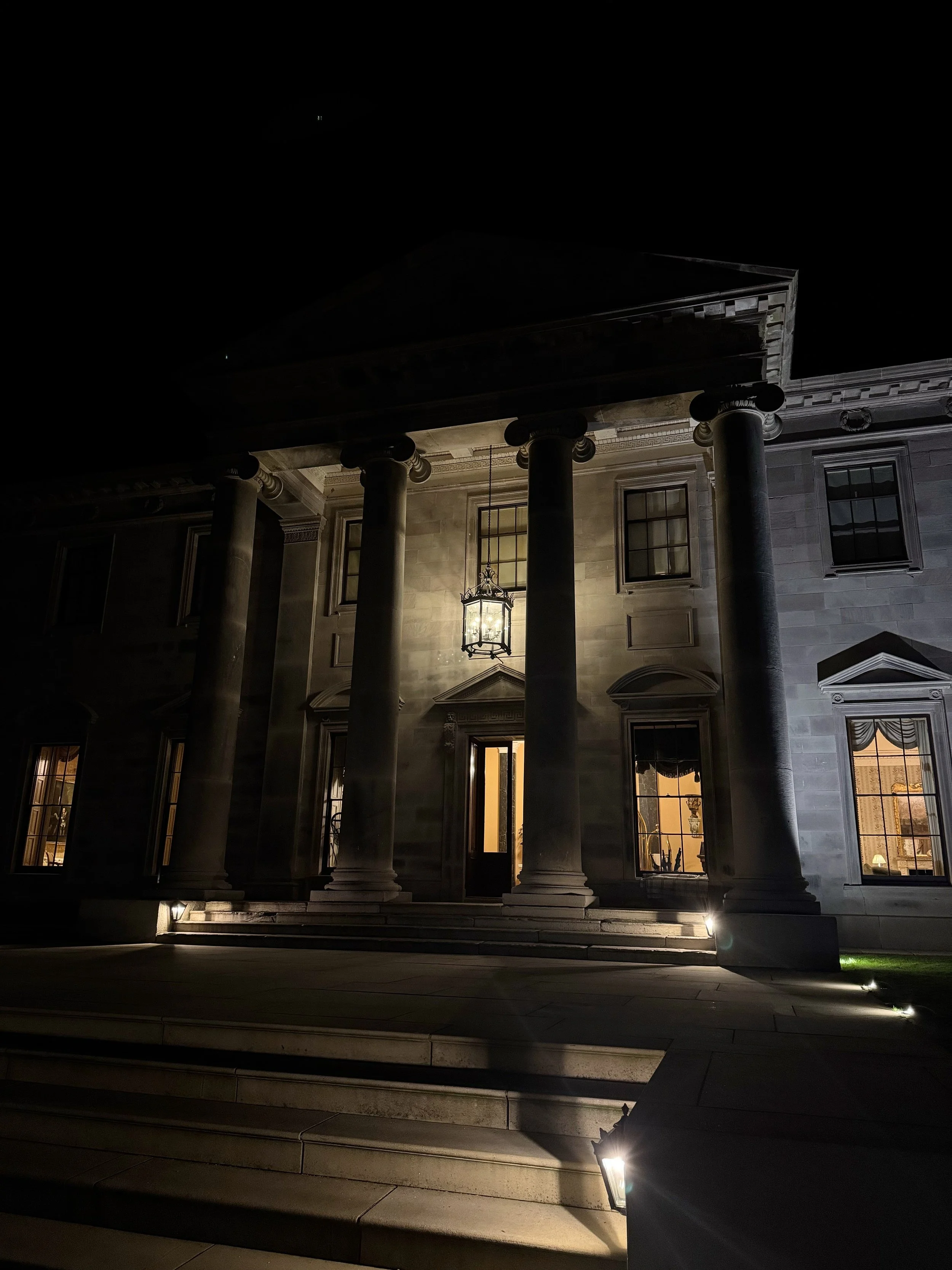 Later, as we stepped outside into the night, the façade of Ballyfin glowed in the soft amber of the lanterns. The lake shimmered in the distance, + for a moment, I felt suspended in time — between the glow of having had such an exquisite evening + the desire for it to last through the night. It was the kind of evening that reminds you why connection — to place, to history, to each other — really matters.